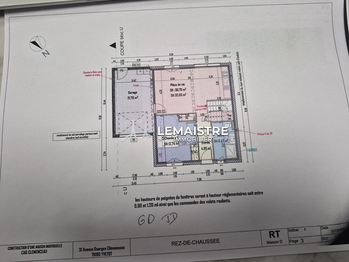 Venez découvrir avec votre Agence Lemaistre Immobilier, cette maison d'habitation offrant de belles prestations, mitoyenne d'un côté et comprenant au rez de chaussée : une entrée, un séjour ouvert sur coin cuisine aménagée et équipée (four - plaque de cuisson - hotte - lave-vaisselle - réfrigérateur/congélateur), une chambre, une salle de douche, un wc. A l'étage : un palier desservant deux chambres, une salle de douche avec wc. Un garage viendra compléter ce bien avec une place de stationnement aménagée devant ledit garage. Chauffage individuel par pompe à chaleur Jardinet