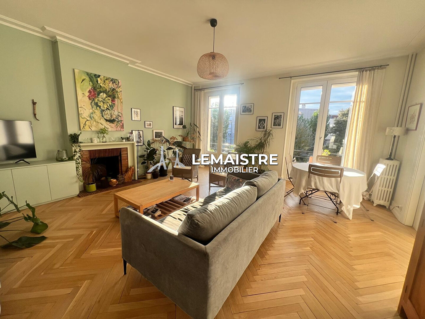 SAINT JOSEPH, ENTRE LA HALLE et LA PLAGE, RARE A LA VENTE, SUPERBE APPT de 96m² aux BEAUX VOLUMES et BELLE LUMINOSITE. Il comprend 3 chambres dt 1 avec SDD, SDB, vaste séjour avec parquet donnant sur BALCON équipé de 2 stores. VUE DEGAGEE SUR PARC ARBORE EYT PAYSAGER. CAVE et Poss GARAGE en option.