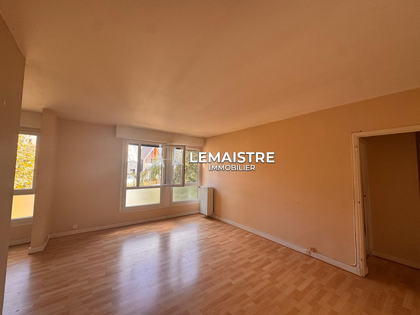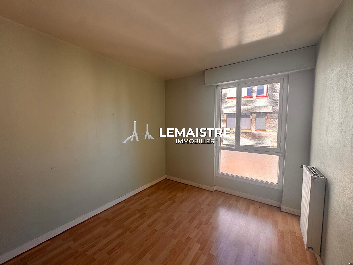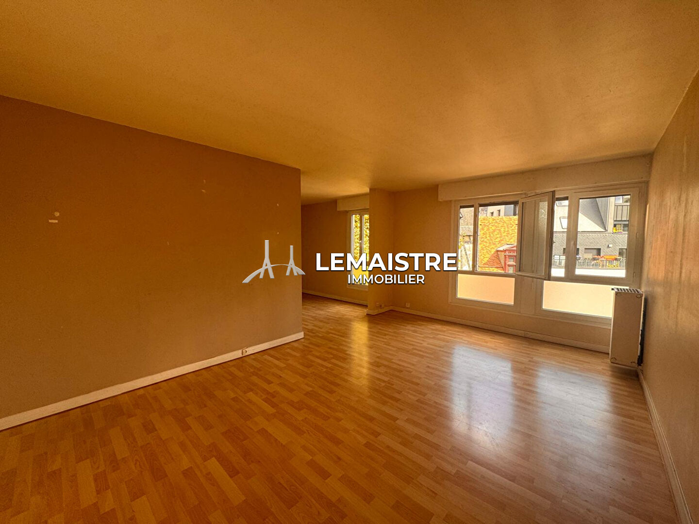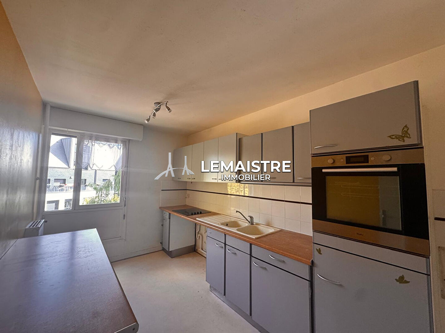 Entrée, séjour-salon avec une jolie vue sur le quartier historique, cuisine indépendante, 2 chambres.