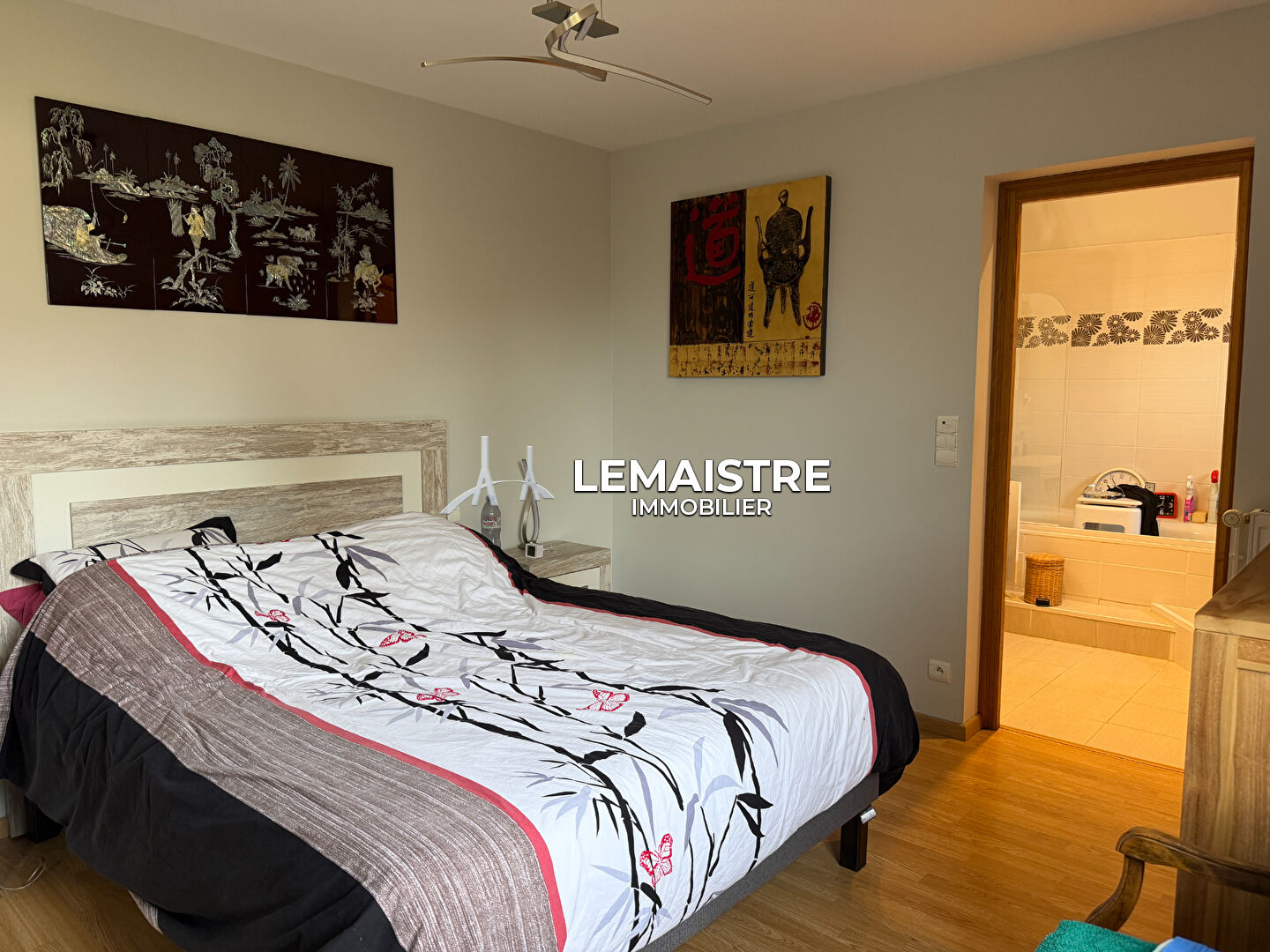 Elle se compose : d'une entrée, d'une cuisine aménagée équipée ouverte sur un séjour salon LUMINEUX, de 5 chambres dont une de plain pied avec salle de bain et douche, wc, une pièce palière, d'une salle de bains avec douche, WC.
