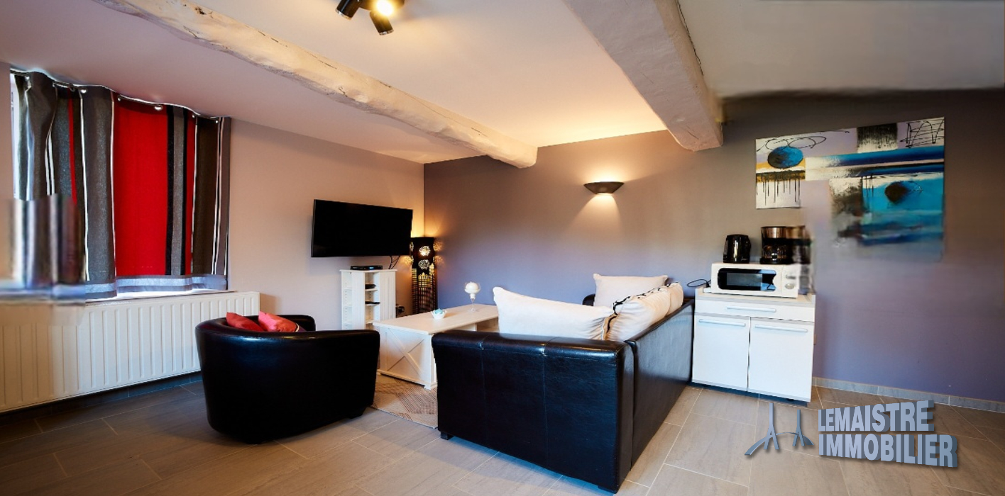 PROCHE DE CANY, dans la Vallée de la Durdent, MAISON aménagée avec goût offrant des prestations de qualité et comprenant : une cuisine aménagée / séjour, 1 chambre, 1 palier-bureau, une salle d'eau, un wc, un SPA et une TERRASSE. Le tout entièrement meublé et équipé. PARKING et CELLIER. Coup de coeur assuré !REF : 914SL Copropriété de 9 lots - dont 9 lots habitation.(Pas de procédure en cours).
