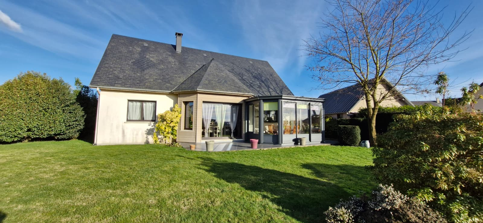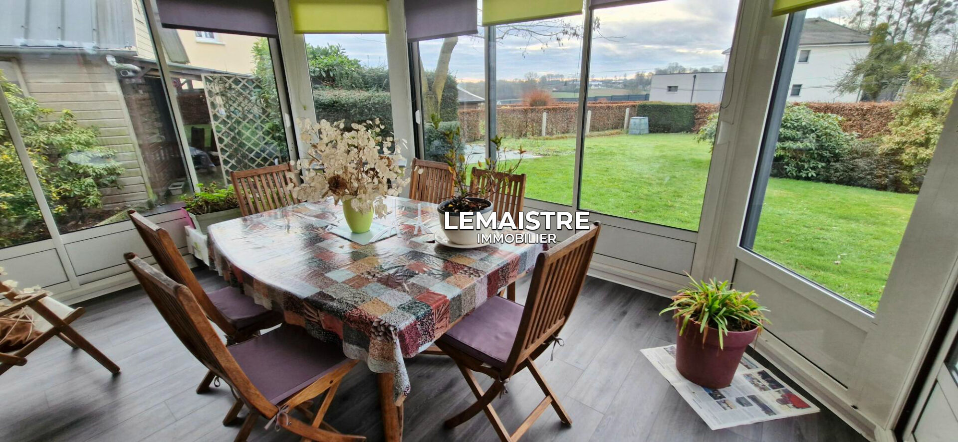 EXCLUSIVITÉ, SUR AXE YVETOT / DOUDEVILLE, MAISON DE PLAIN-PIED comprenant : une véranda, une cuisine aménagée ouverte sur la salle-salon de 43.50 m², 2 chambres avec placards, un bureau, un cellier, une salle d'eau et un wc. TERRAIN d'environ 1170 m². DÉPENDANCE avec carport, grenier et pièce atelier. Tout à l'égout. REF : 1149SL