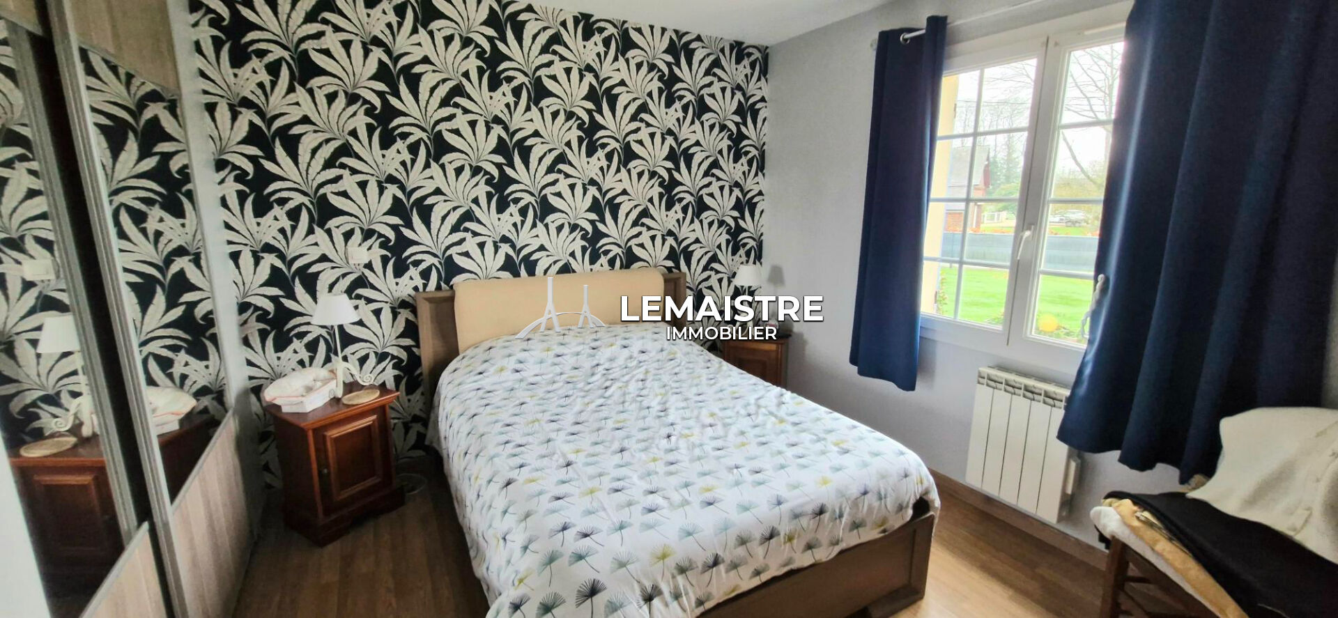 LEMAISTRE IMMOBILIER vous propose cette agréable MAISON DE PLAIN-PIED. Elle se compose : - d'une entrée - d'une cuisine ouverte sur séjour-salon - d'une salle d'eau - d'une buanderie - de 3 chambres - d'un wc Vous profiterez également d'un GARAGE de 55 m² et d'un BEAU JARDIN de 1627 m², idéal pour profiter des beaux jours. Secteur recherché - environnement calme Surface : 102 m² Terrain : 1627 m² Prix : 254 500 euros LEMAISTRE IMMOBILIER - Réseau de 7 agences en Normandie Depuis 1998, notre entreprise familiale accompagne vendeurs et acquéreurs dans leurs projets immobiliers. Estimation gratuite de votre bien !