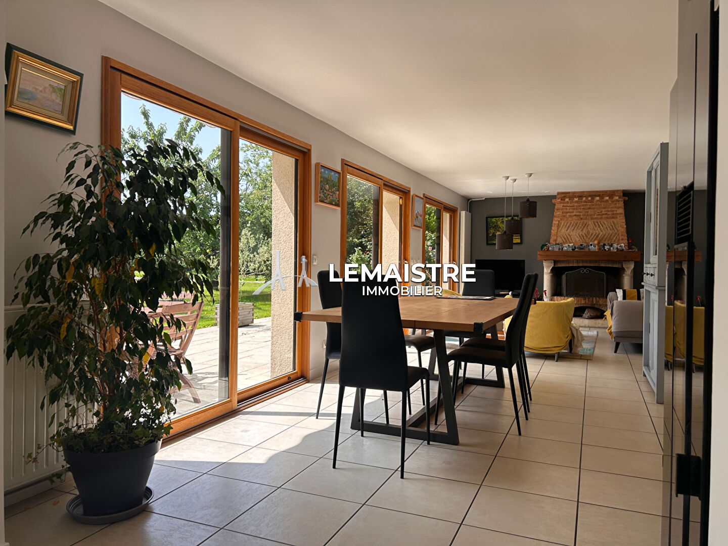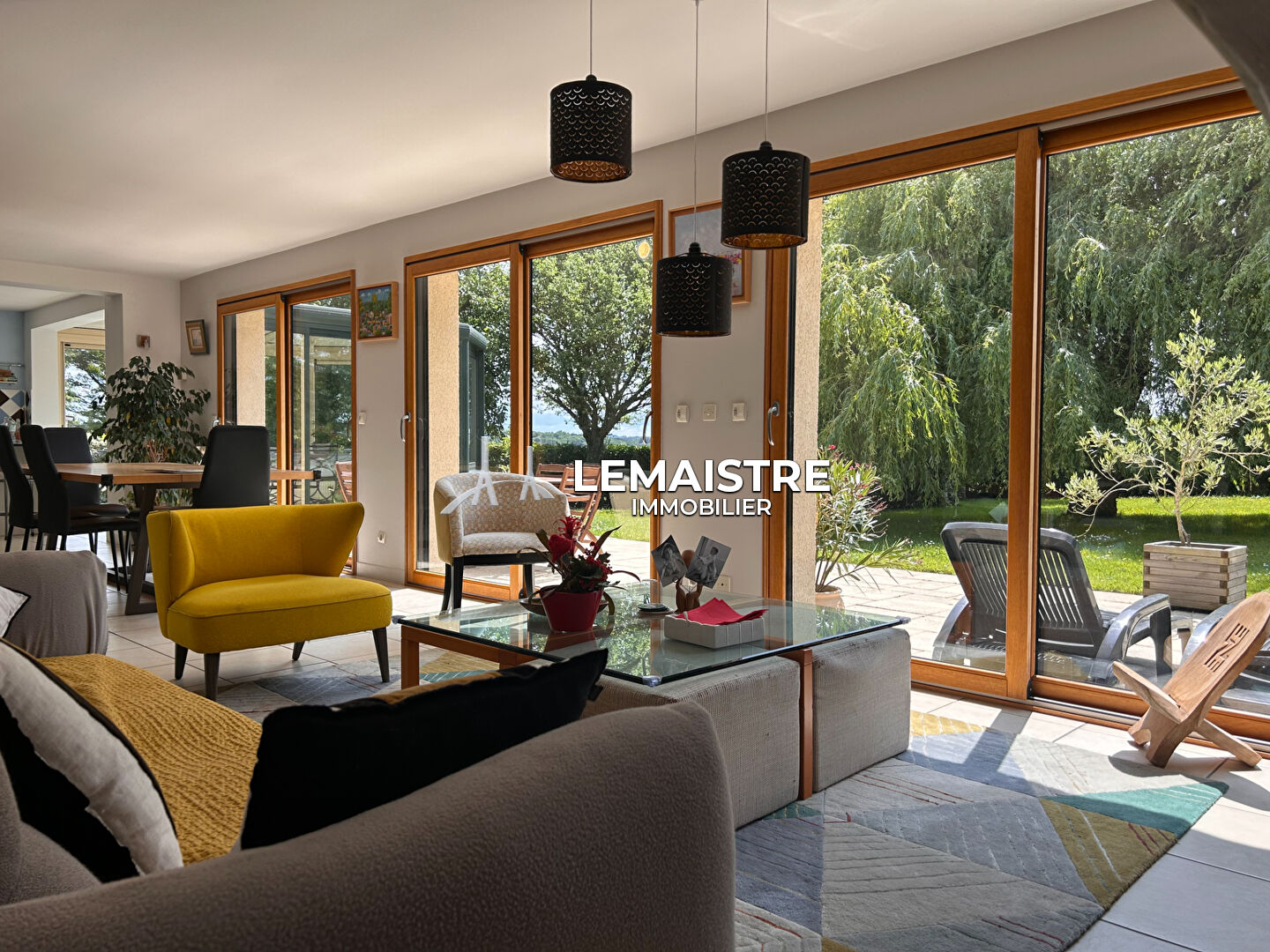 NOUVEAUTÉ Maison avec de beaux volumes 162m² aux portes d'ETRETAT Elle se compose d'une entrée spacieuse, un GRAND séjour avec cheminée, cuisine aménagée équipée ouverte sur une MAGNIFIQUE vérandas le tout très LUMINEUX. TROIS chambres possibilité QUATRE, deux salle d'eau, wc, buanderie. Garage double avec grenier. LES +++ PERFOMANCE ENERGETIQUE BELLE PARCELLE CALME Réf: 3593 A. Grancher (Agent Co.)