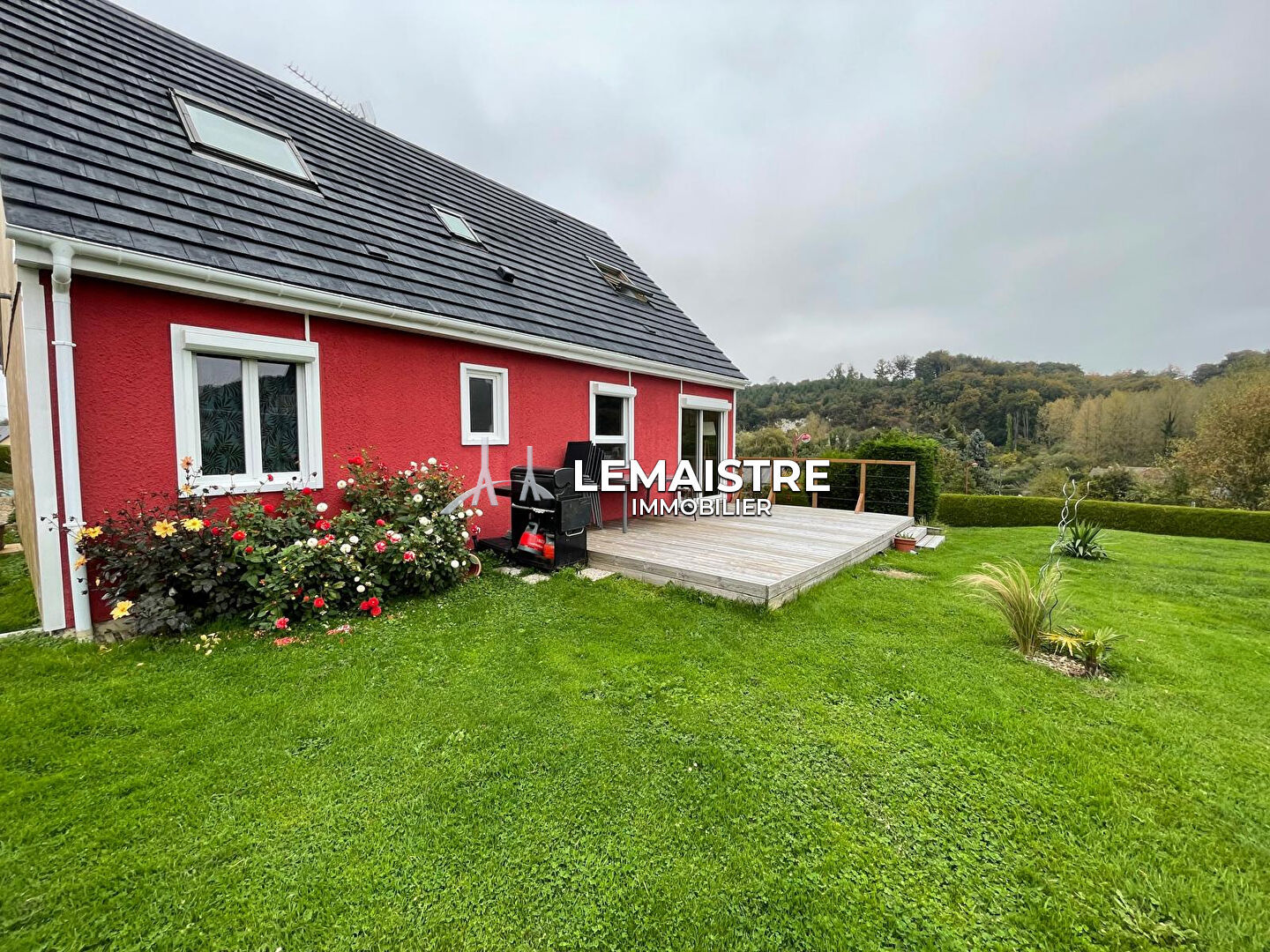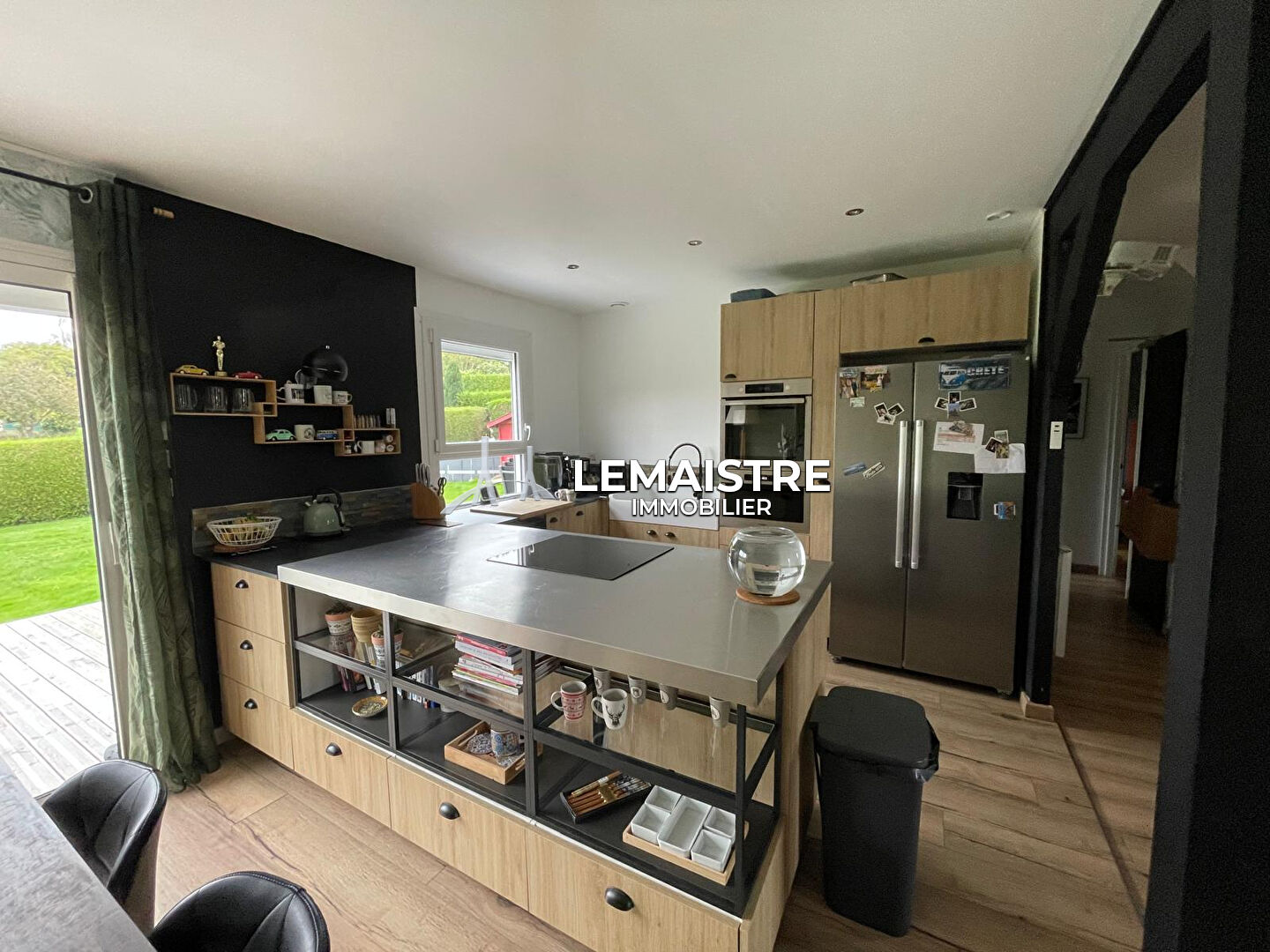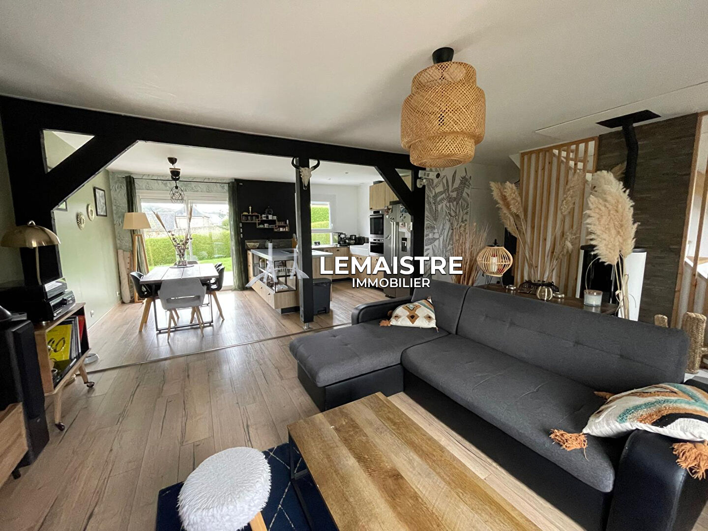Axe Fauville/Fécamp - Belle maison en ossature bois offrant une vie de plain-pied, édifiée sur sous-sol complet en maçonnerie. Grande pièce de vie de 42 m², 4 chambres dont une avec dressing, salle de bains et salle de douche. Sous-sol avec vestiaire chauffé, garage-buanderie et deux pièces supplémentaires. Jardin avec abri. Maison lumineuse et soignée, prête à emménager ! Réf.: 1777K. Colinard (Agent Co.)