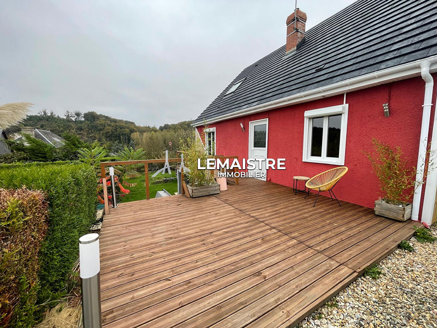 Axe Fauville/Fécamp - Belle maison en ossature bois offrant une vie de plain-pied, édifiée sur sous-sol complet en maçonnerie. Grande pièce de vie de 42 m², 4 chambres dont une avec dressing, salle de bains et salle de douche. Sous-sol avec vestiaire chauffé, garage-buanderie et deux pièces supplémentaires. Jardin avec abri. Maison lumineuse et soignée, prête à emménager ! Réf.: 1777K. Colinard (Agent Co.)