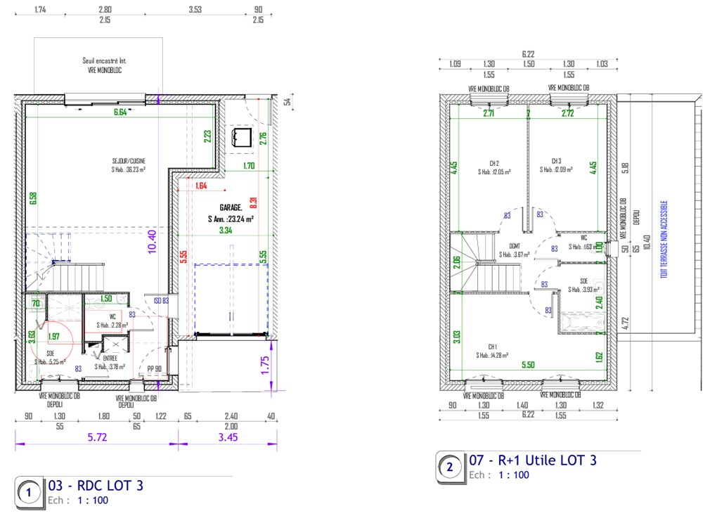 * de 3 chambres en étage