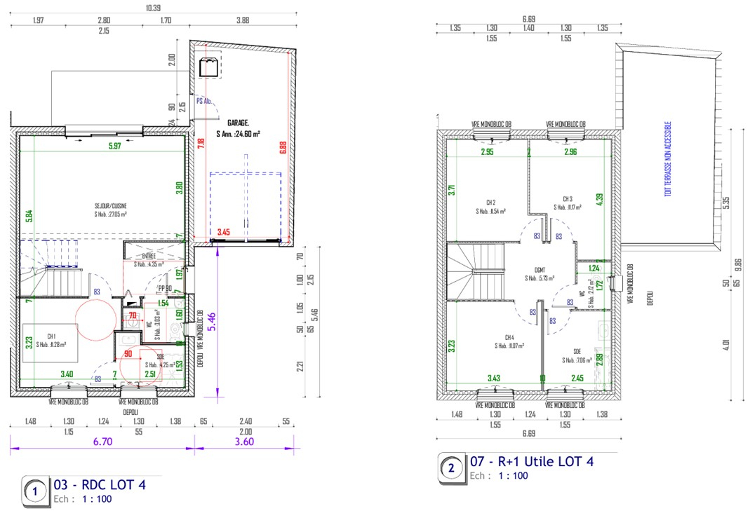 Chauffage et eau chaude par pompe à chaleur. Plancher béton étage. Isolation optimisée.