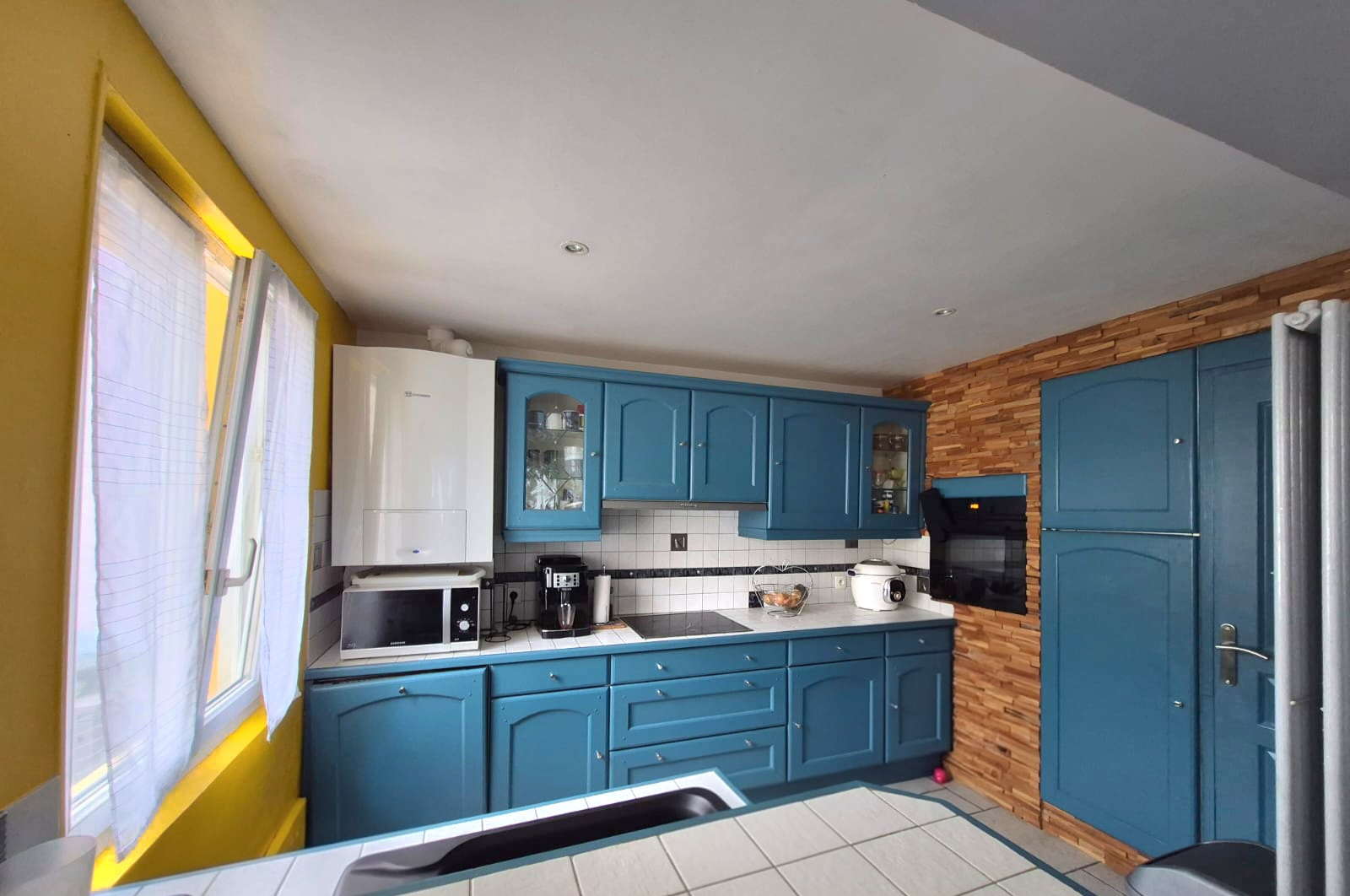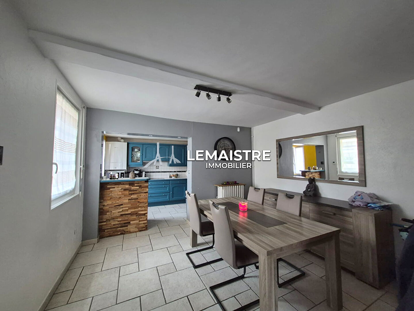 Au rez-de-chaussée, vous profiterez d'un bel espace de vie lumineux d'environ 30 m², comprenant un séjour-salon convivial, ainsi qu'une cuisine aménagée.