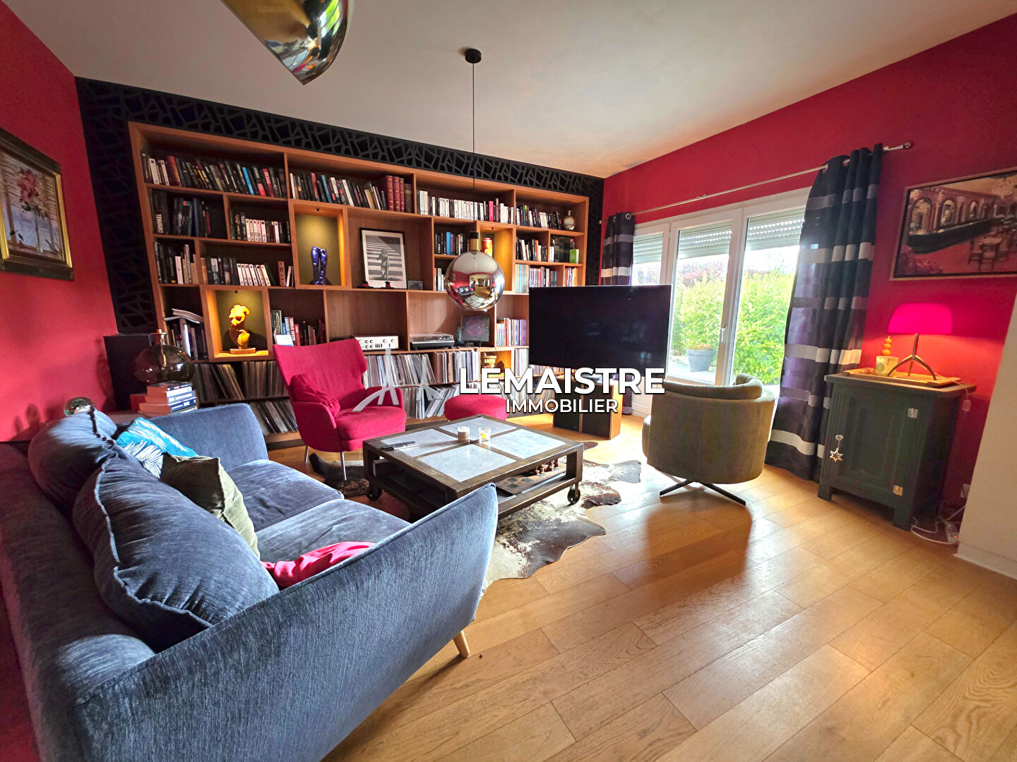 La maison dispose d'un séjour salon spacieux et lumineux, donnant sur une cuisine aménagée moderne.