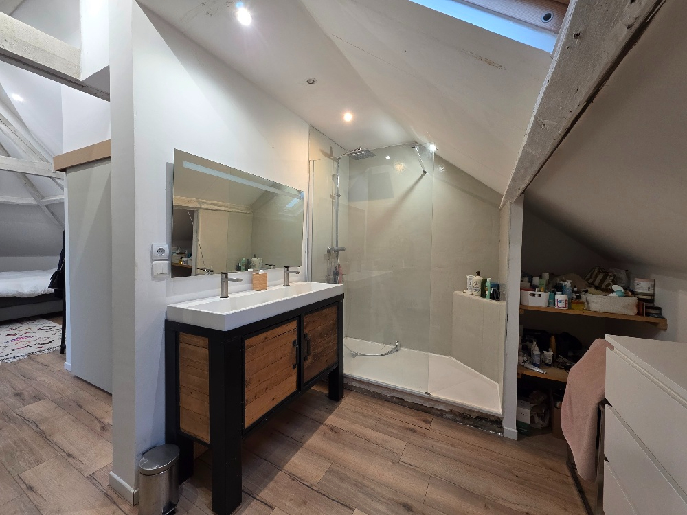 SANVIC EGLISE MAISON sur COUR avec GARAGE en très bon état offrant : * Au rdc : Cuisine aménagée équipée ouverte sur séjour, * Au 1er : chambre, SDB, wc * Au 2ème : grande chambre mansardée. Secteur RCHERCHE proche toutes commodités