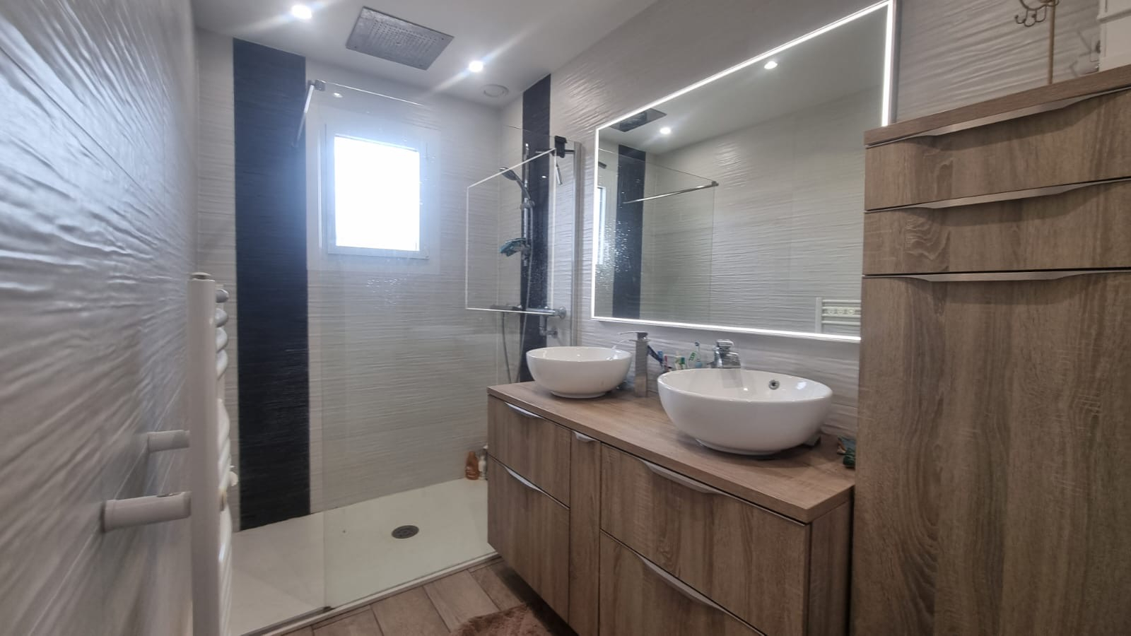 - A l'étage : palier couloir avec rangements desservant 3 chambres dont une suite parentale avec salle de douche privative avec WC.
