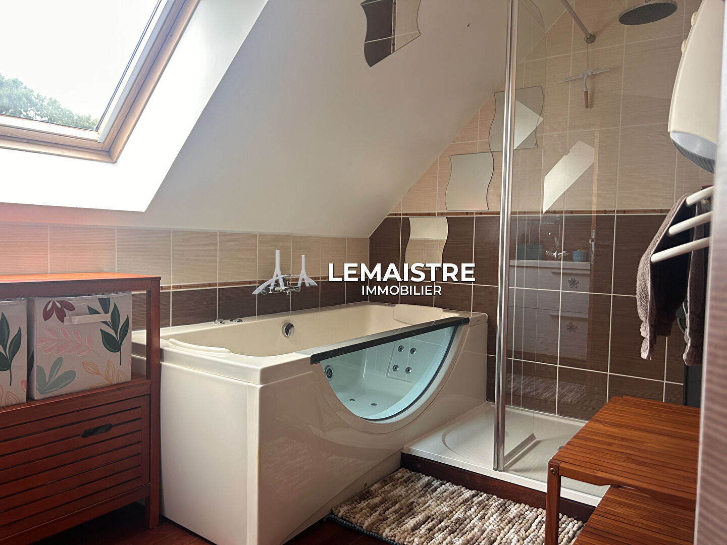NOUVEAUTÉ SECTEUR ST JOUIN BRUNEVAL Maison au VOLUME FAMILIAL avec vie de PLAIN PIED, comprenant entrée, SPACIEUX séjour salon, cuisine aménagée équipée, une chambre, salle de douce, WC. A l'étage vous trouverez un palier desservant 4 belles chambres dont une avec salle de douche, dressing, salle de bains et douche, WC. Garage double, dépendance, jardin arboré et clos.