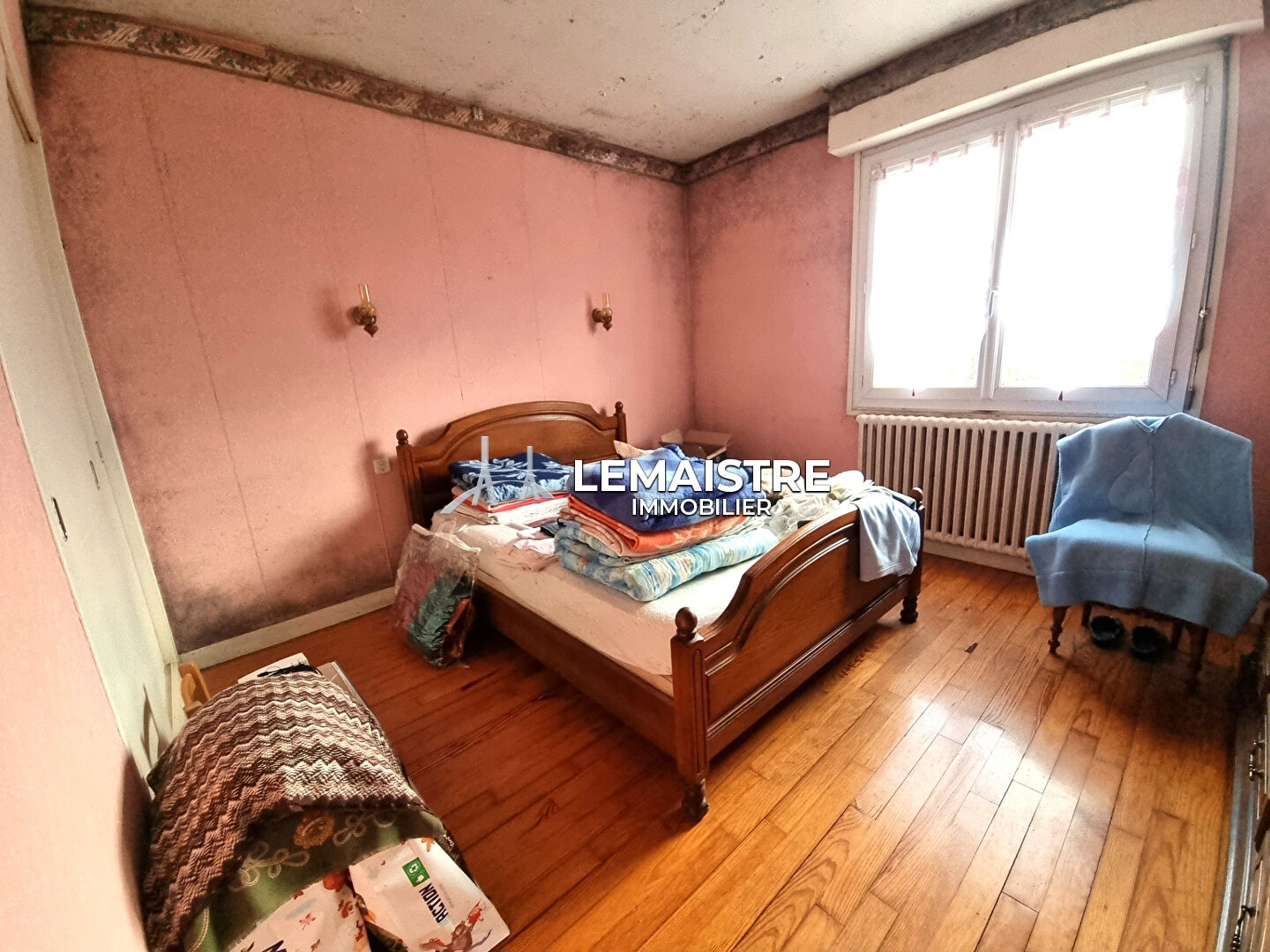 HAMEAU ST-ROMAIN, pavillon traditionnel à RENOVER 61m² hab sur sous-sol complet hors-sol 52m². Entrée, séjour, cuisine, SDB, WC, 2 chambres. Garage, chaufferie, lingerie. Lumineuse