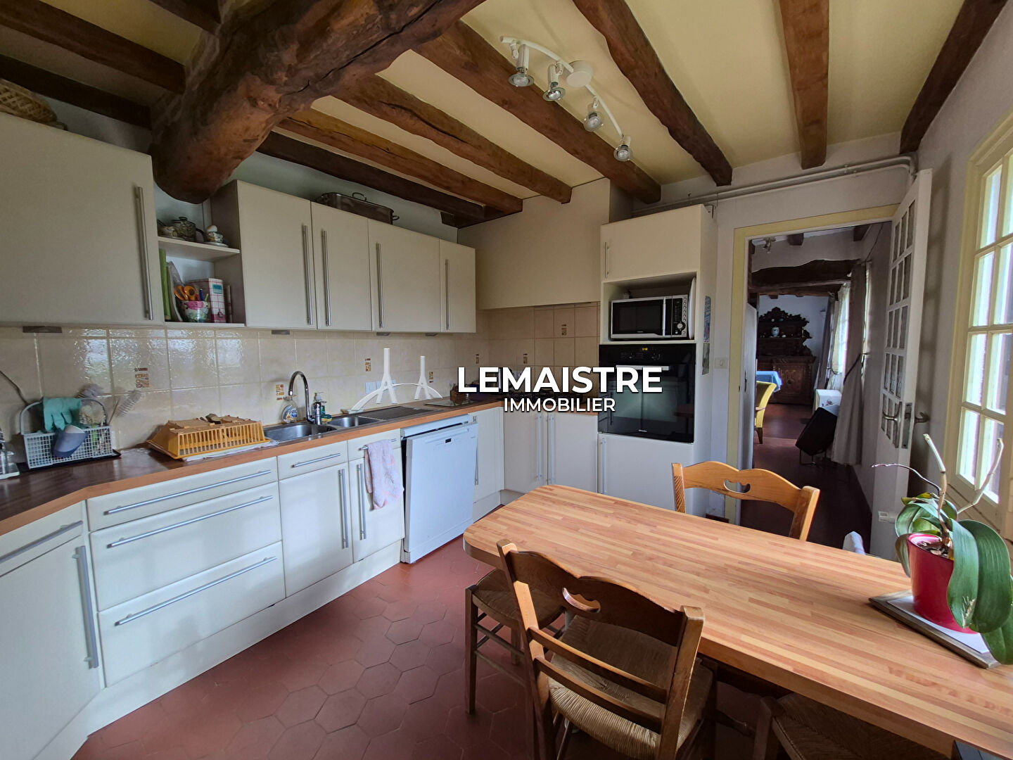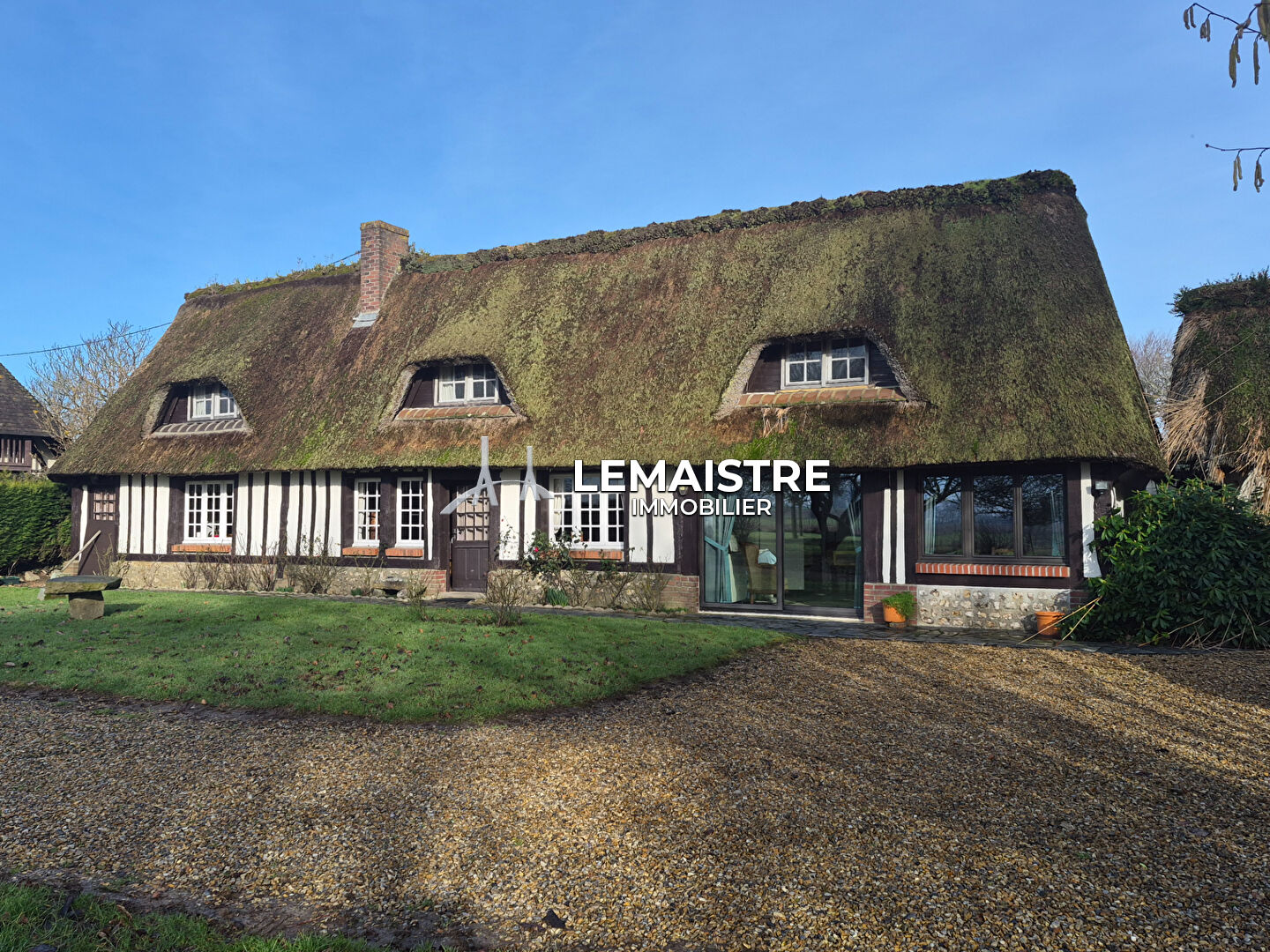 Laissez-vous séduire par cette ravissante chaumière normande d'environ 120 m², où le cachet de l'ancien se mêle harmonieusement au confort de la vie de plain-pied.