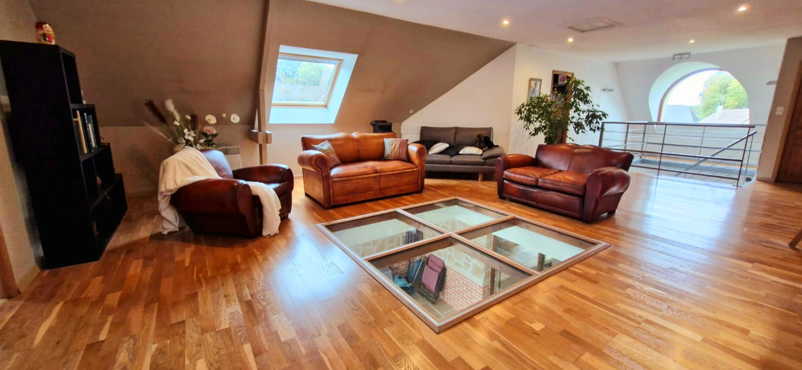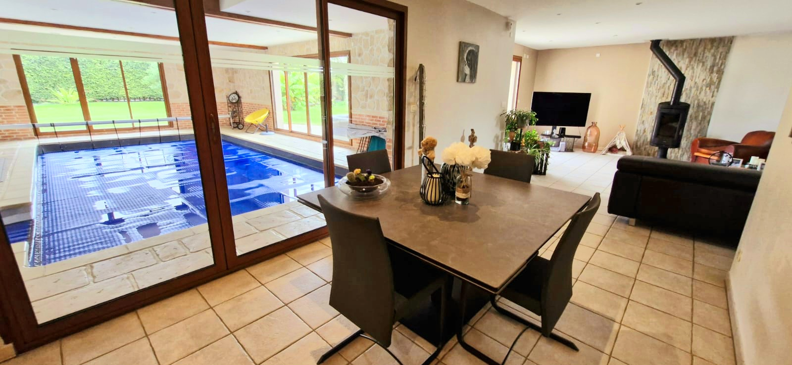 A proximité de TÔTES, MAISON CONTEMPORAINE de plus de 225 m² habitables offrant : un hall d'entrée, un wc, une cuisine aménagée et équipée de 20 m² ouverte sur une salle-salon de 52 m² avec poêle à bois, chambre et salle d'eau de plain-pied. A l'étage : une pièce de 40 m², 4 chambres et 2 SDB. Vous trouverez également un GRAND GARAGE, un cellier et une PISCINE COUVERTE 4X8. Le tout sur un TERRAIN PAYSAGER de 2860 m². REF : 1110SL