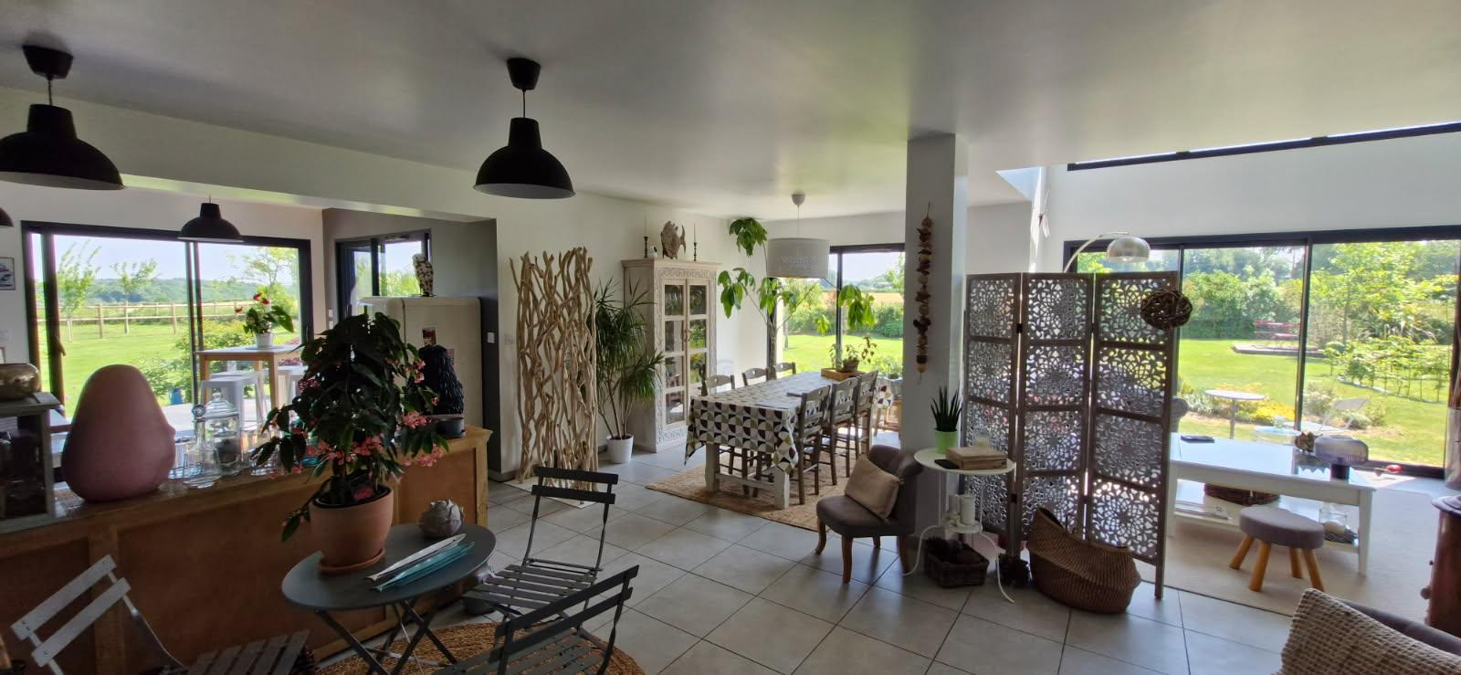 Les huisseries sont en alu et la maison est équipée d'une pompe à chaleur avec plancher chauffant et d'une alarme.
