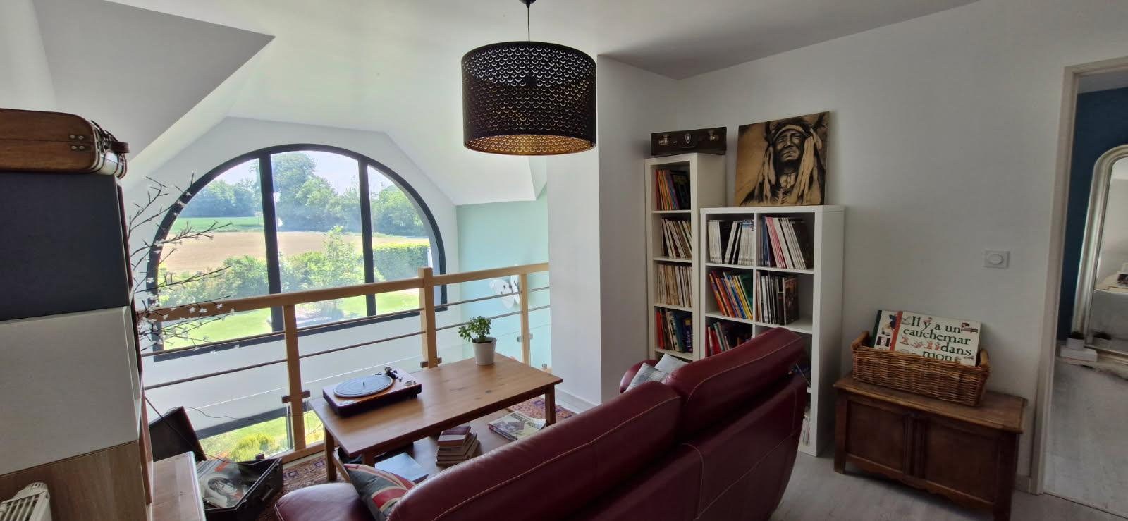 La mezzanine de l'étage avec sa vue dégagée, dessert 2 grandes chambres avec rangements, 1 SDB +douche et un WC.
