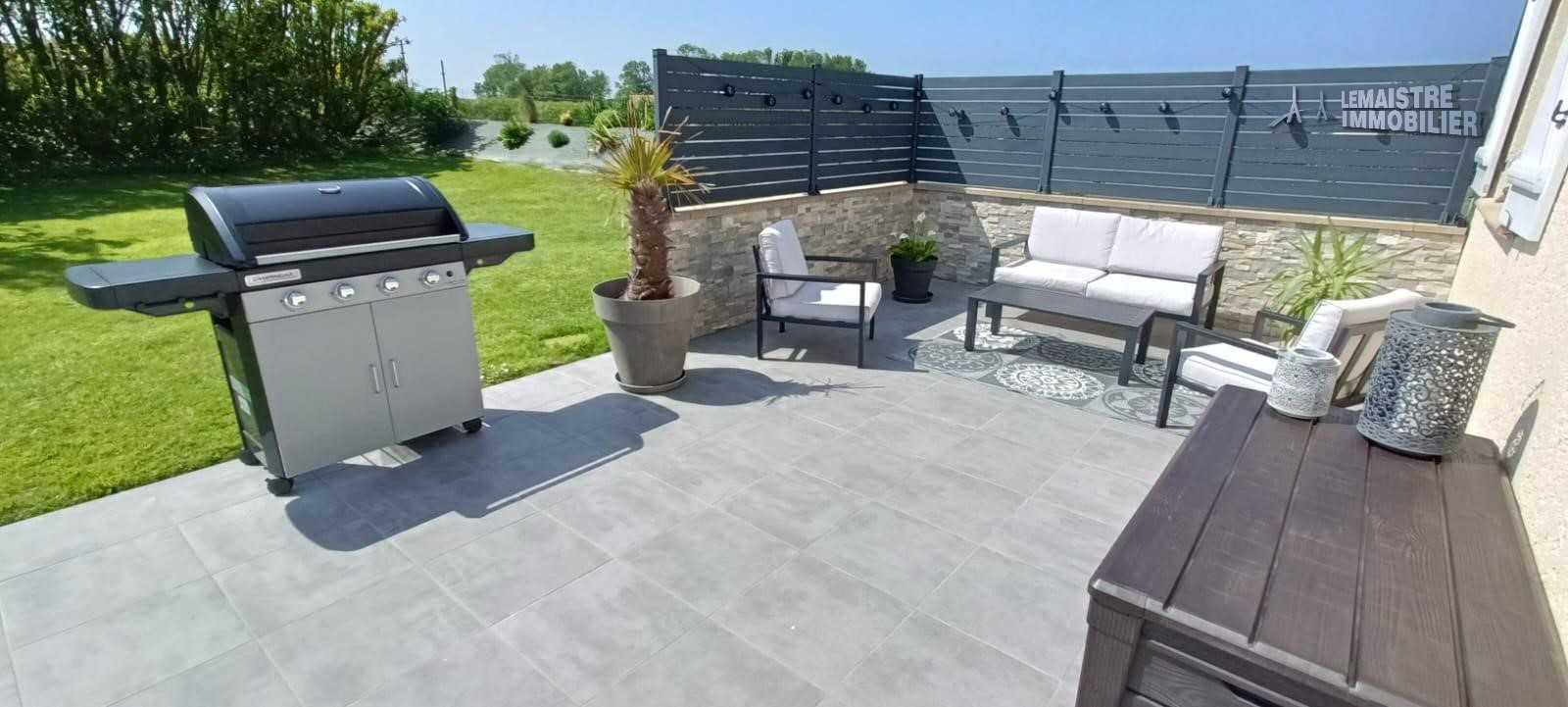 Pavillon 4 CHAMBRES avec vie de PLAIN PIED, comprenant au rez-de-chaussée entrée, cuisine aménagée équipée ouverte sur séjour salon avec poêle à granulés, deux CHAMBRES, salle de bain, wc. A l'étage belle pièce palière de 20 m2, deux chambres. Garage attenant Belle parcelle de 1600m², terrasse, portail motorisé. Réf 3462A. GRANCHER