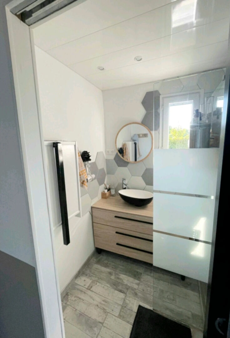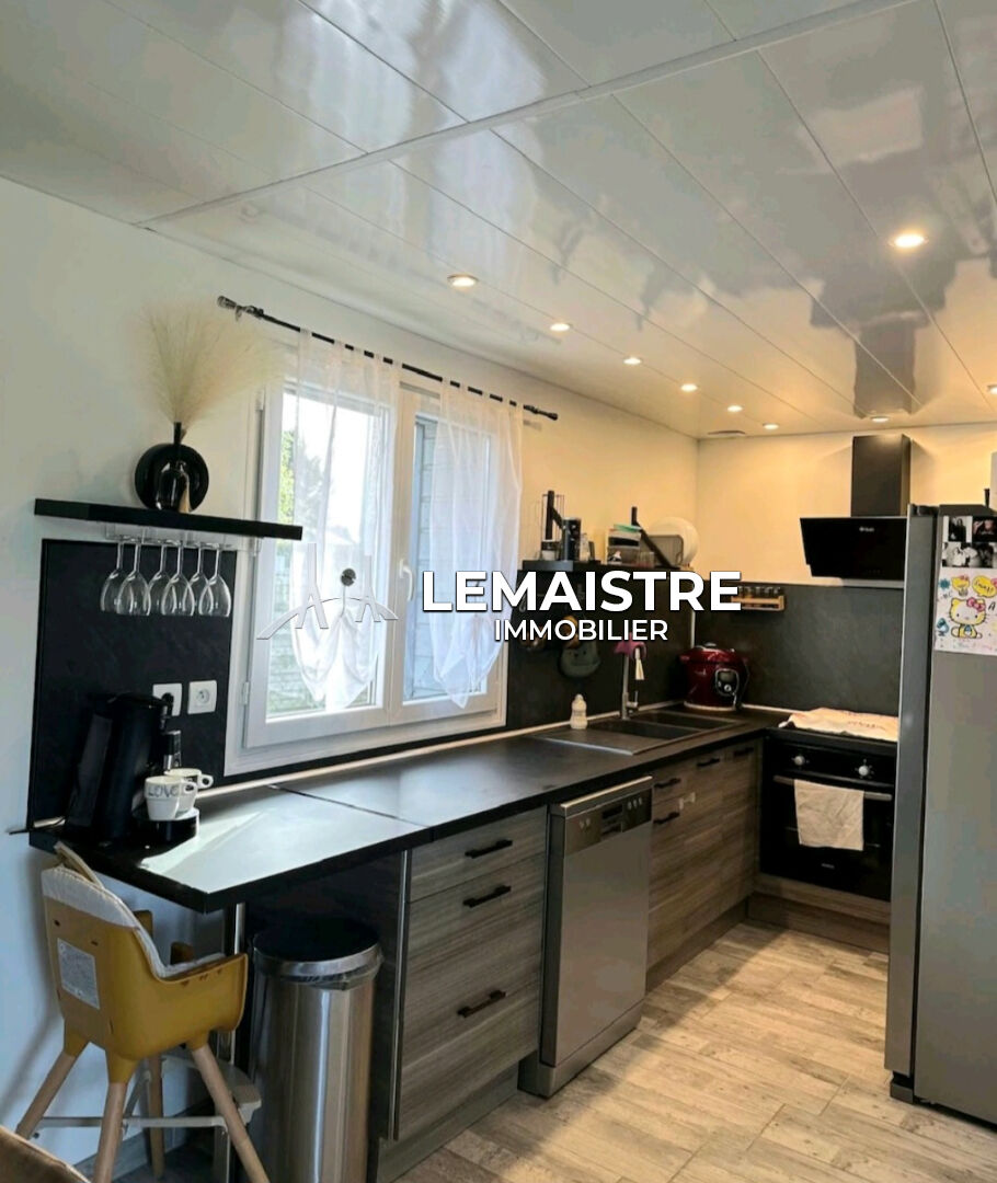 Village entre YVETOT et DOUDEVILLE, MAISON offrant une entrée, un wc, une salle d'eau avec douche et meuble vasque, une cuisine aménagée ouverte sur une salle-salon avec poêle à granulés. A l'étage : 2 chambres. TERRAIN de 350 m². Tout à l'égout. REF : 1081SL