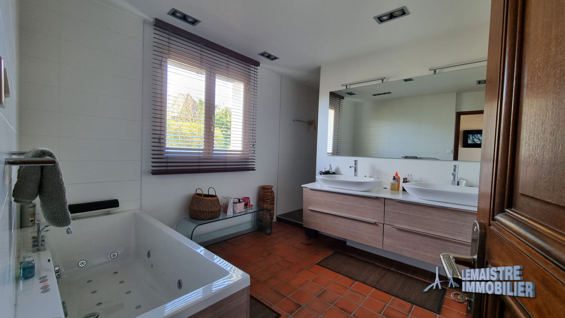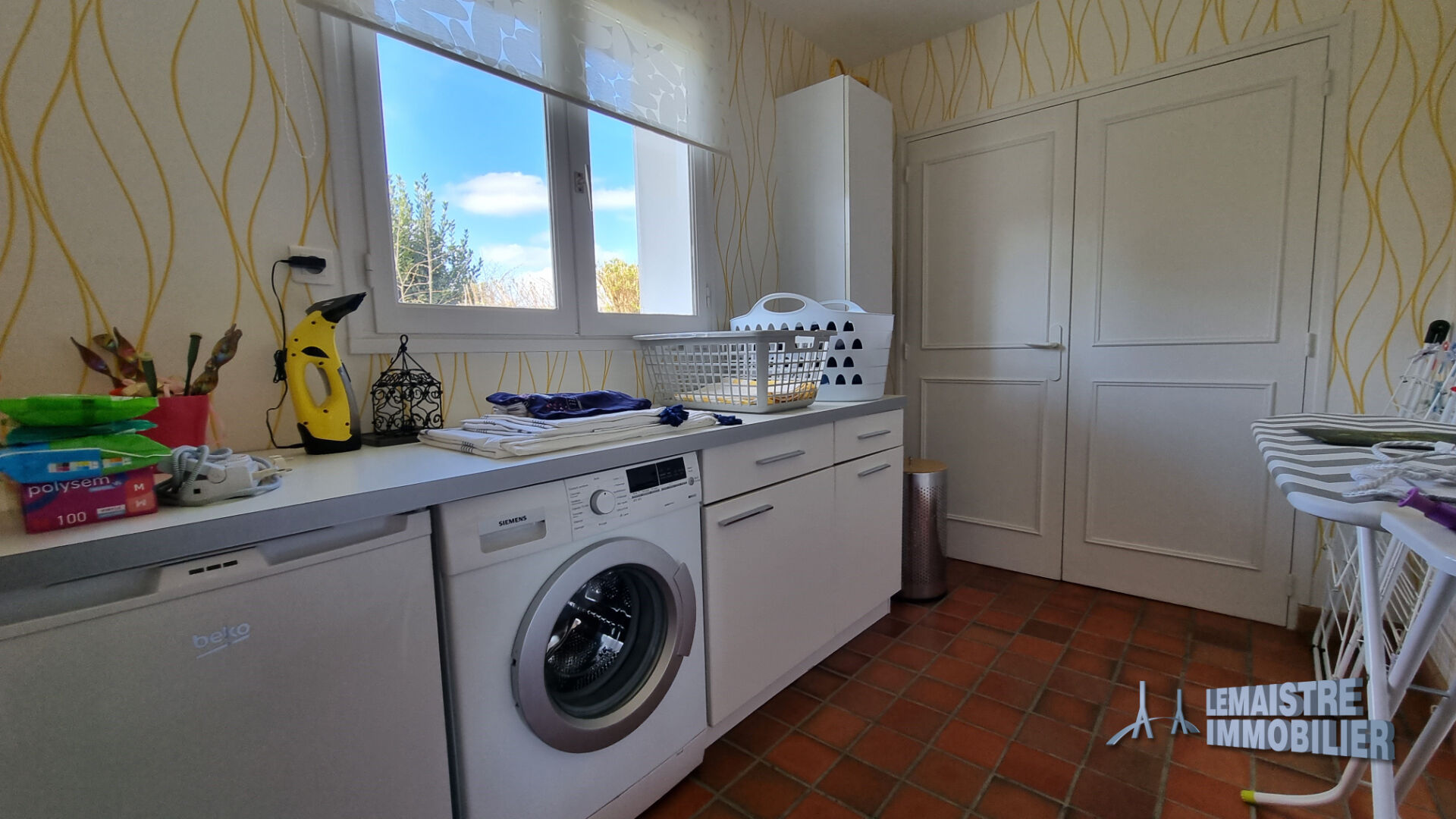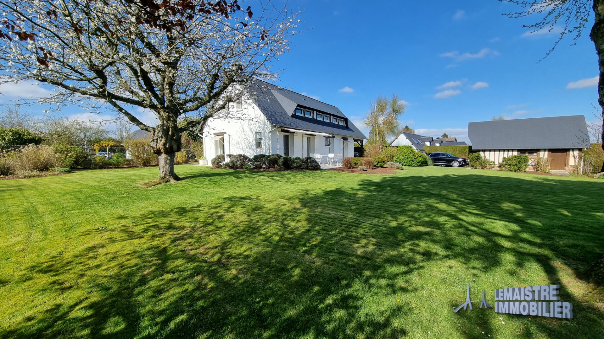 YVETOT, PROCHE GARE, MAISON de 169 m² édifiée sur un TERRAIN de 1400 m² entièrement clos et paysager offrant une pièce de vie de 42 m² avec sa cheminée, une cuisine aménagée et équipée de 18 m², une lingerie, une SDB avec baignoire balnéo et douche à l'italienne et une chambre. A l'étage, une mezzanine idéale pour vos loisirs, une suite parentale de 26 m², deux chambres et un bureau. GARAGE et CARPORT. REF : 1142AA