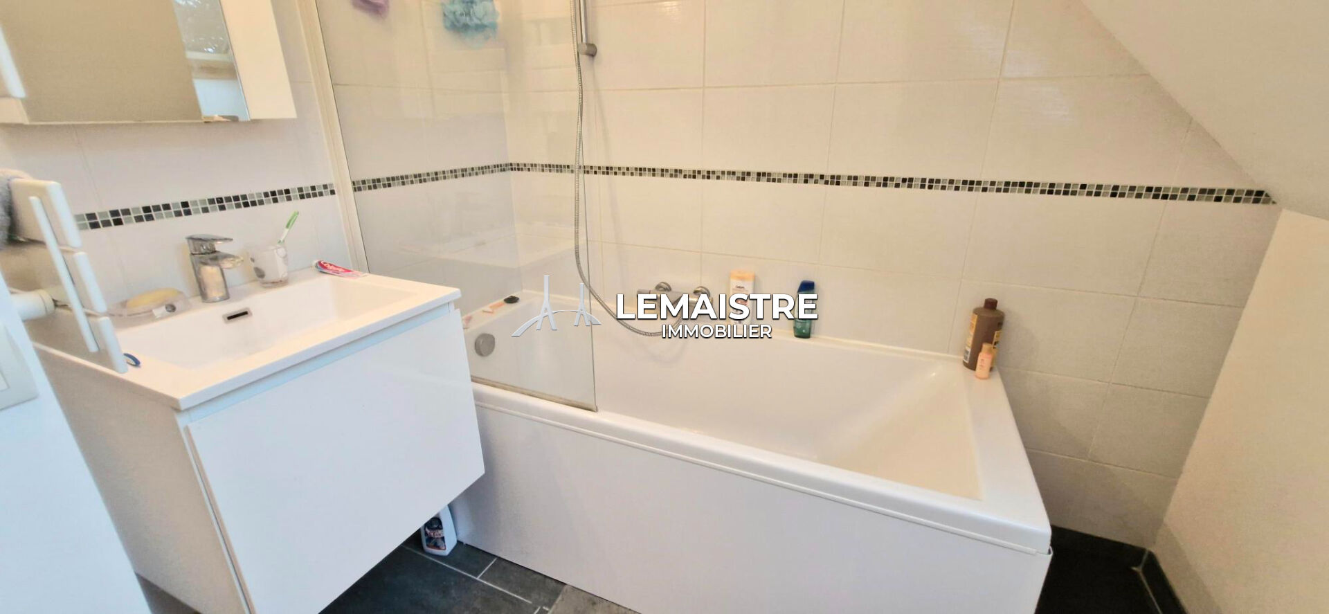 LIMITE YVETOT, MAISON INDIVIDUELLE de 85 m² habitables comprenant : une cuisine aménagée ouverte sur la salle-salon avec poêle à granulés, 3 chambres, 2 SDB, 2 wc. GARAGE. Le tout sur un TERRAIN de plus de 880 m². A visiter sans tarder ! REF : 1119SL