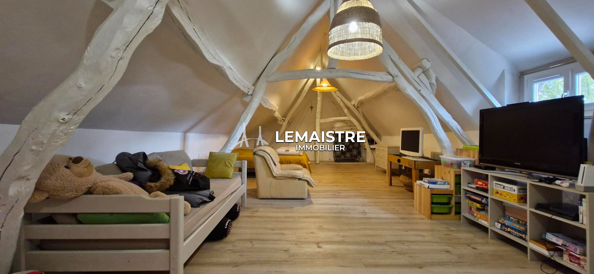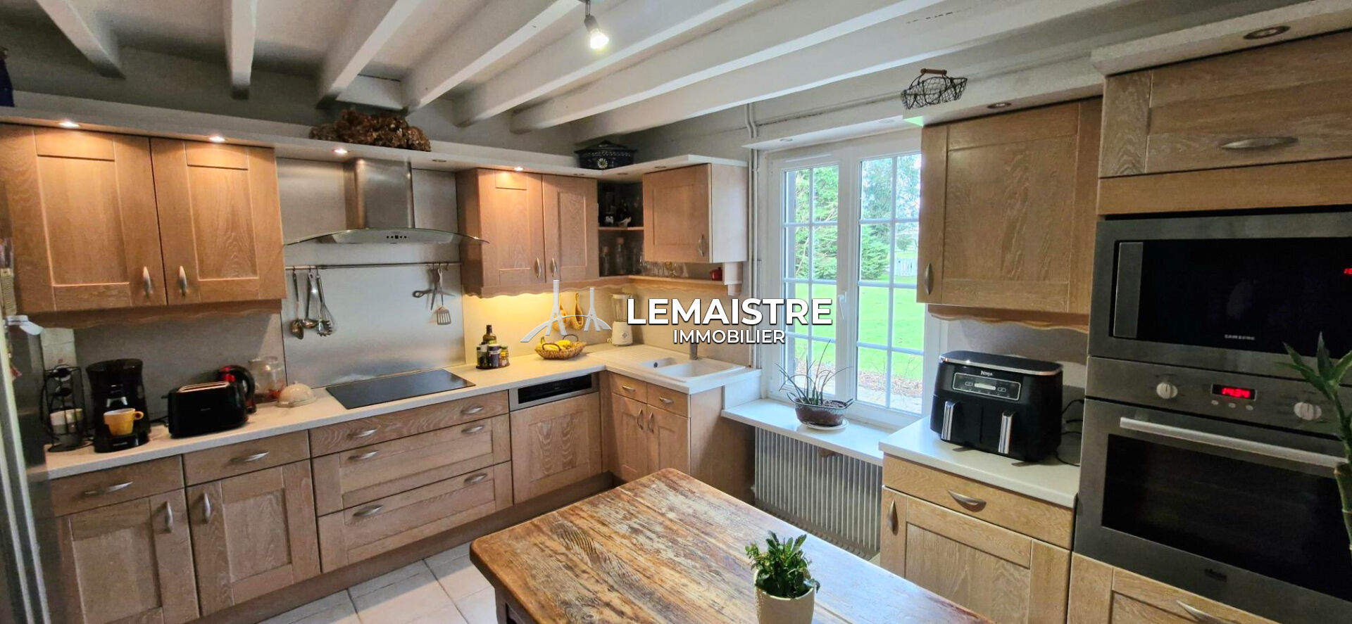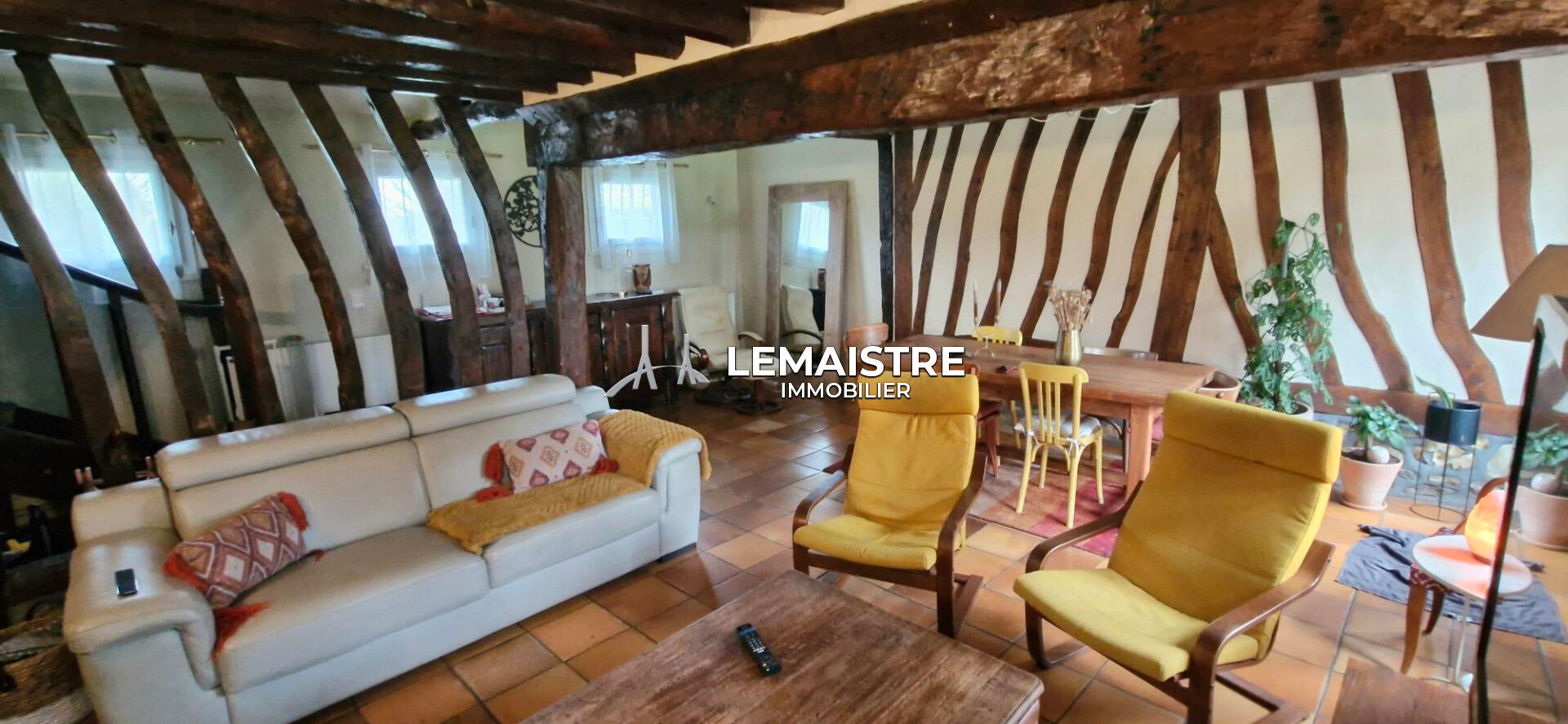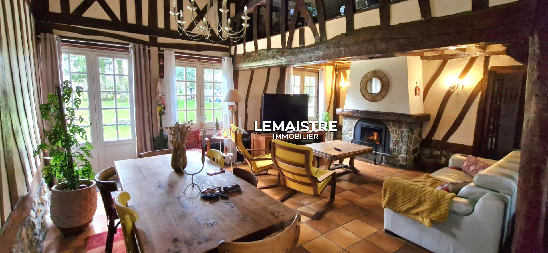 AUX PORTES D'YVETOT, superbe chaumière COUP DE COEUR, d'environ 215 m² édifiée sur un TERRAIN clos et paysager de 1780 m². Elle offre au RDC une entrée, une vaste cuisine dinatoire aménagée et équipée, un séjour-salon avec insert bois, 4 chambres, une salle de bains (avec douche, baignoire et double vasque) et un espace lingerie. Deux escaliers mènent à l'étage desservant d'un côté un palier pouvant faire office de bureau, ainsi qu'une suite parentale (salle de douche, espace dressing et chambre) et de l'autre une chambre ou une salle de jeux. Chauffage par chaudière à granulés - Huisseries récentes en double vitrage PVC. A visiter sans tarder ! REF : 1153KD