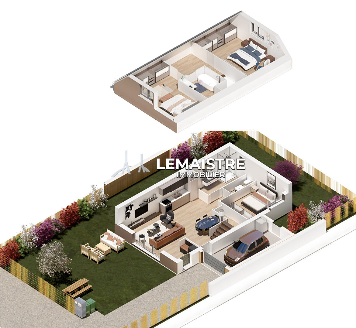 YVETOT, PROGRAMME NEUF LA PLÉNITUDE, proche toutes commodités, MAISON de type F 4 d'une surface de 90 m², comprenant au RDC : une pièce de vie de 40 m², une chambre et une salle d'eau. A l'étage, un palier dessert 2 chambres et une salle d'eau. GARAGE. JARDIN DE 321m². GARANTIE DECENNALE - POMPE A CHALEUR. REF : 15H-T4-SL